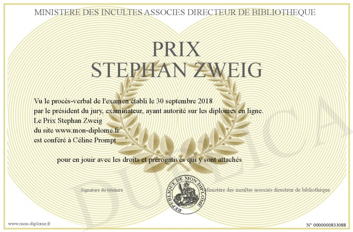 Envoyez par email votre Prix Stephan Zweig personalisé