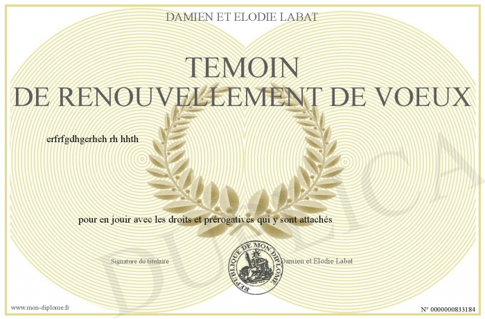 Envoyez par email votre Témoin de renouvellement de voeux personalisé