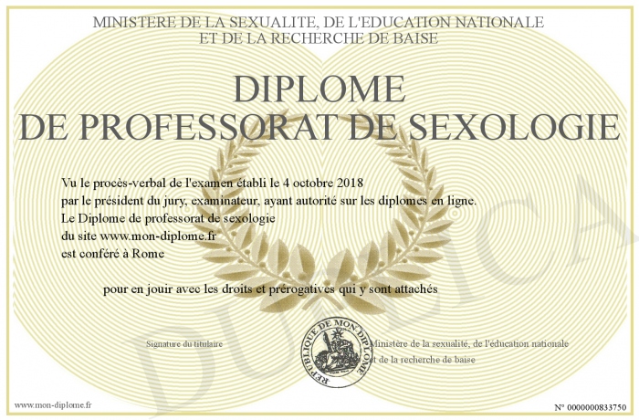 Envoyez par email votre Diplôme de professorat de sexologie personalisé