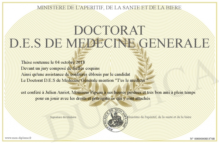Envoyez par email votre Doctorat D.E.S de Médecine Générale personalisé