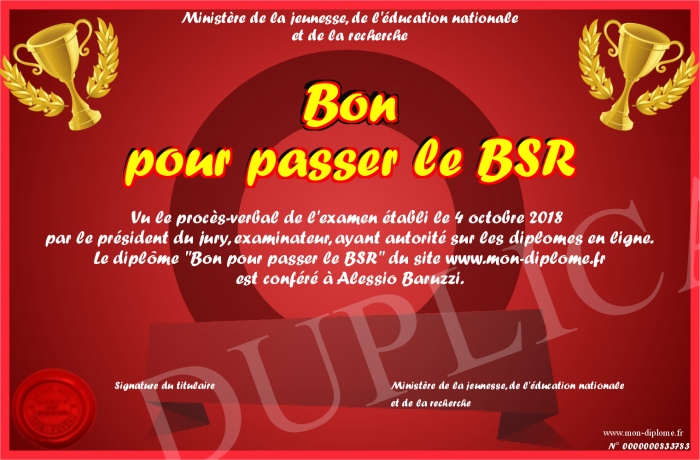 Envoyez par email votre Bon pour passer le BSR personalisé