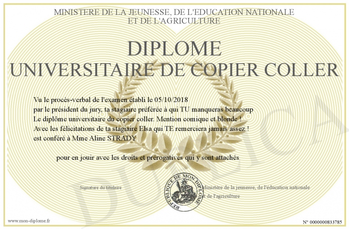 Envoyez par email votre Diplôme universitaire de copier coller personalisé