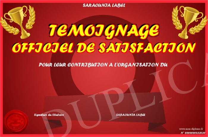 • TEMOIGNAGE OFFICIEL DE SATISFACTION