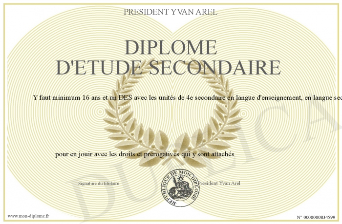 Envoyez par email votre Diplôme D'étude Secondaire personalisé
