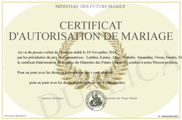 Envoyez par email votre CERTIFICAT D'AUTORISATION DE MARIAGE personalisé