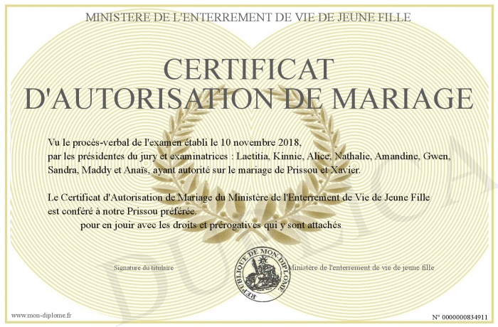 envoyé par le Ministère de l'enterrement de vie de jeune fille !