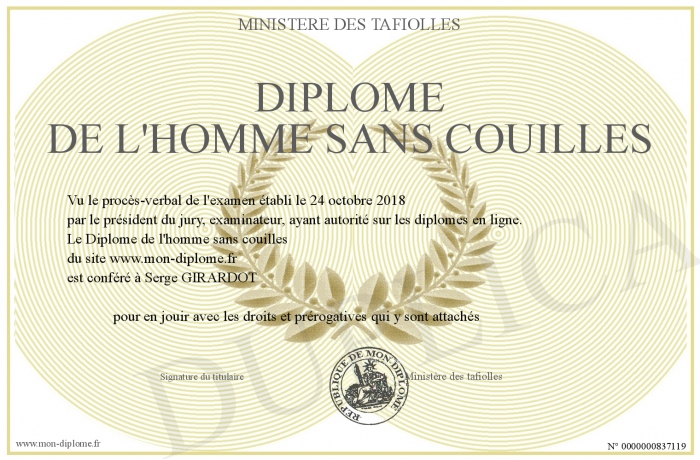 Envoyez par email votre Diplôme de l'homme sans couilles personalisé