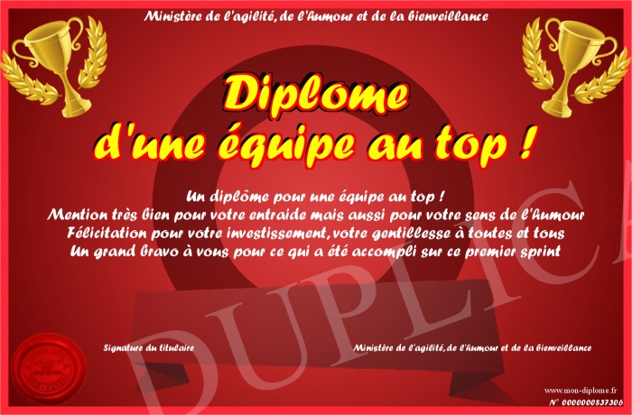 Envoyez par email votre Diplôme d'une équipe au top ! personalisé