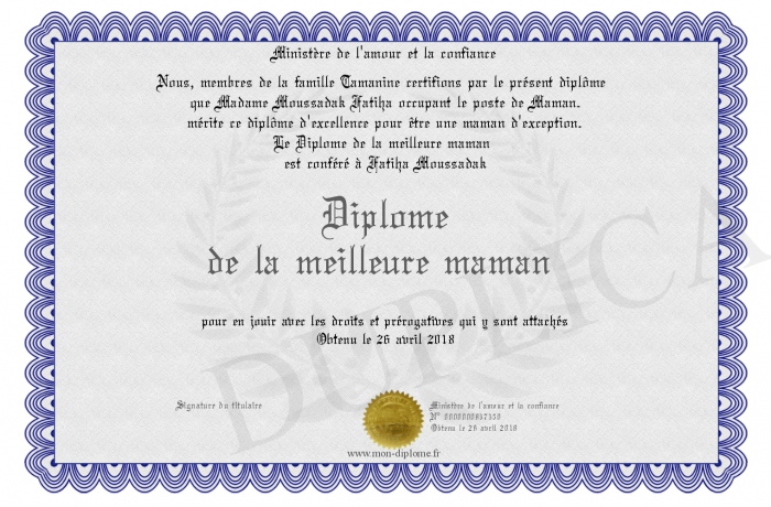 Envoyez par email votre Diplôme de la meilleure maman personalisé