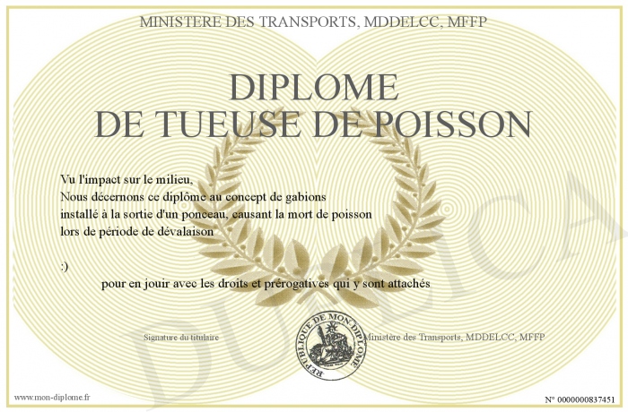 Envoyez par email votre Diplôme de tueuse de poisson personalisé