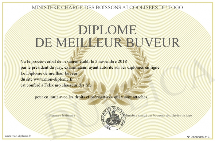 Envoyez par email votre Diplôme de meilleur buveur personalisé