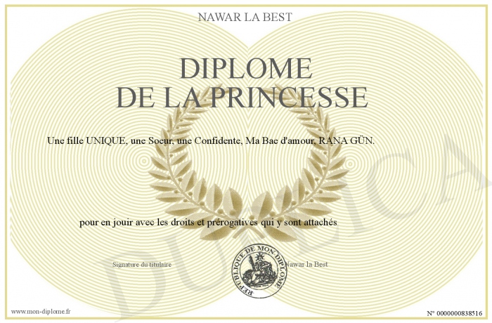 Envoyez par email votre Diplôme de la Princesse personalisé