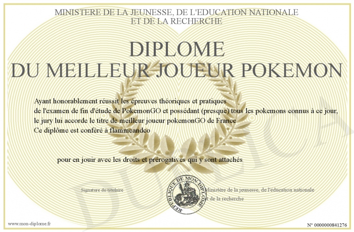 Envoyez par email votre Diplôme du meilleur joueur pokemon personalisé