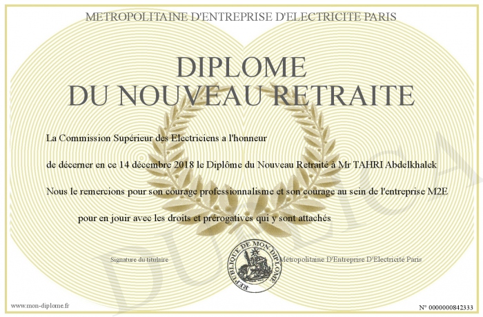Envoyez par email votre Diplôme du Nouveau retraite personalisé