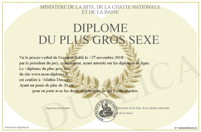 Envoyez par email votre Diplôme du plus gros sexe personalisé