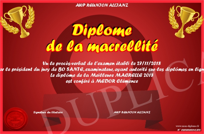Envoyez par email votre Diplôme de la macrellité personalisé