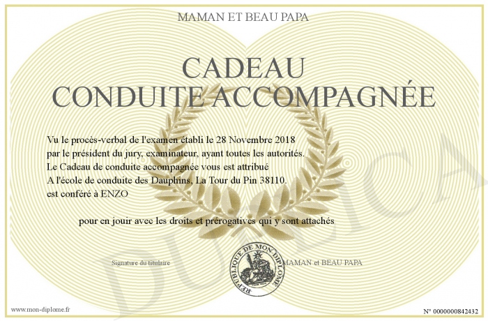Envoyez par email votre CADEAU CONDUITE ACCOMPAGNÉE personalisé