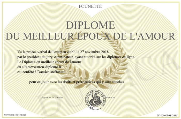Envoyez par email votre Diplôme du meilleur époux de l'amour personalisé