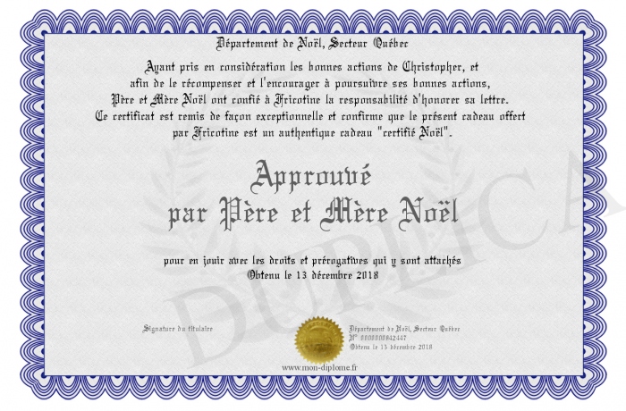 Envoyez par email votre Approuvé par Père et Mère Noël personalisé