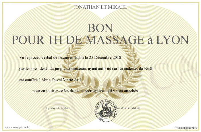 Envoyez par email votre Bon pour 1h de massage à Lyon personalisé