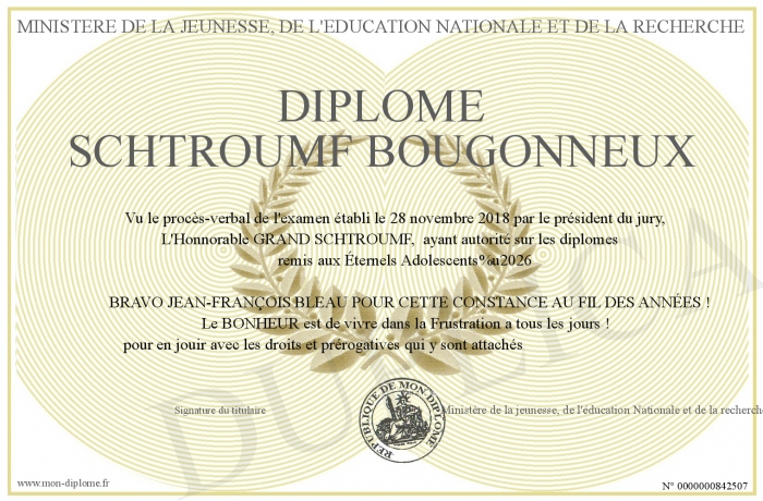 Envoyez par email votre Diplôme SCHTROUMF BOUGONNEUX personalisé