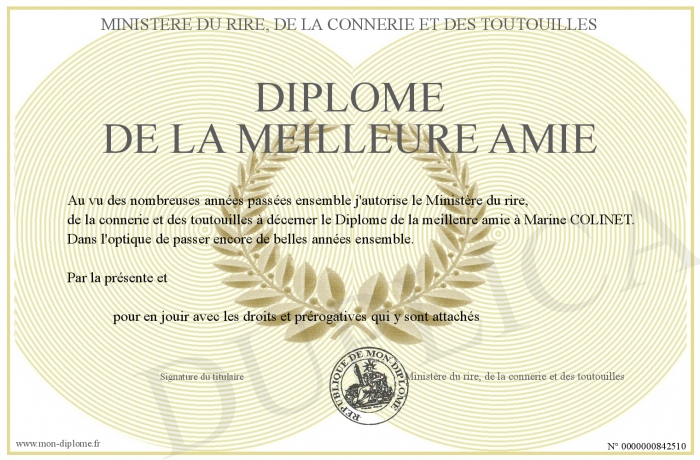Envoyez par email votre Diplôme de la meilleure amie personalisé