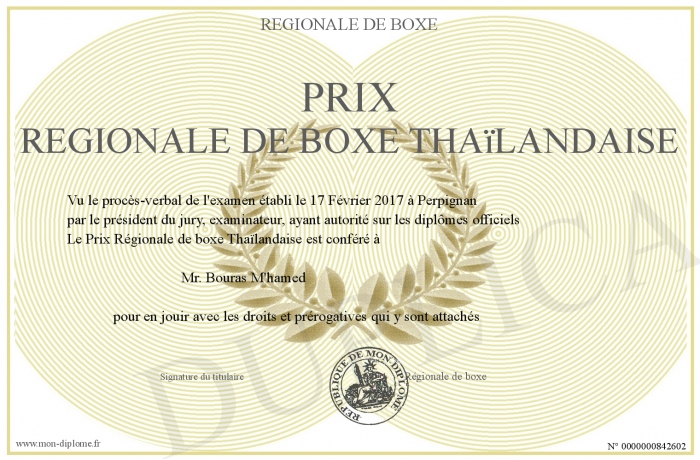 Envoyez par email votre prix régionale de boxe thaïlandaise personalisé