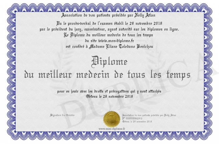 Envoyez par email votre Diplôme du meilleur medecin de tous les temps personalisé