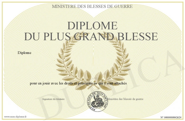 Envoyez par email votre Diplome du plus grand blessé personalisé