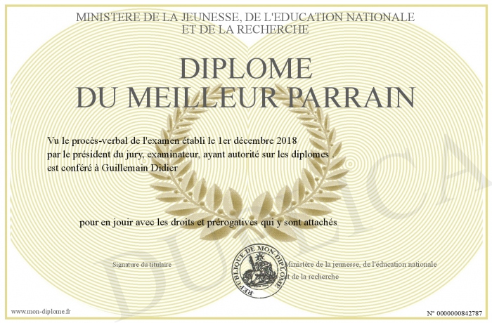 Envoyez par email votre Diplôme du meilleur parrain personalisé