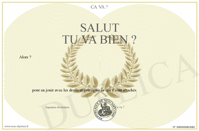 Envoyez par email votre Salut tu va bien ? personalisé