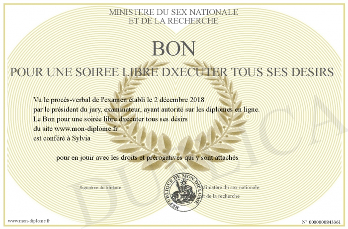 Envoyez par email votre Bon pour une soirée libre dxecuter tous ses désirs personalisé