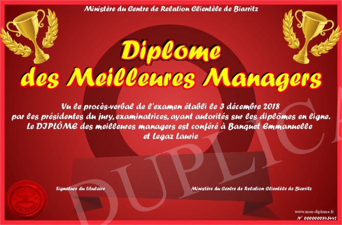 Envoyez par email votre Diplôme des Meilleures Managers personalisé