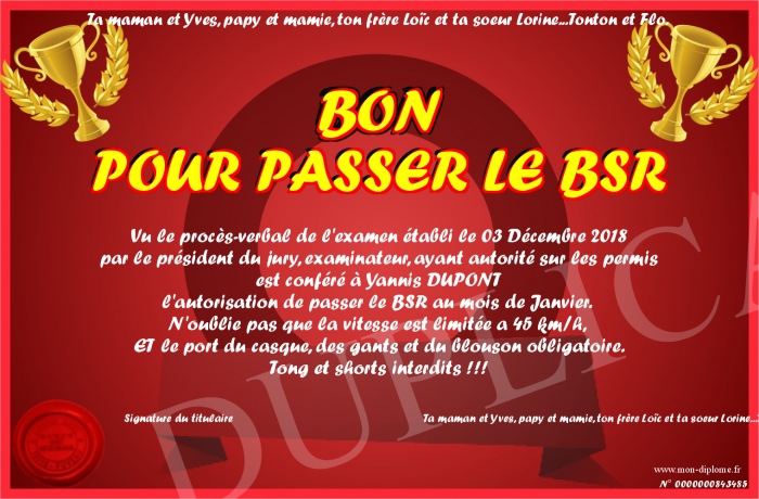 Envoyez par email votre BON POUR PASSER LE BSR personalisé