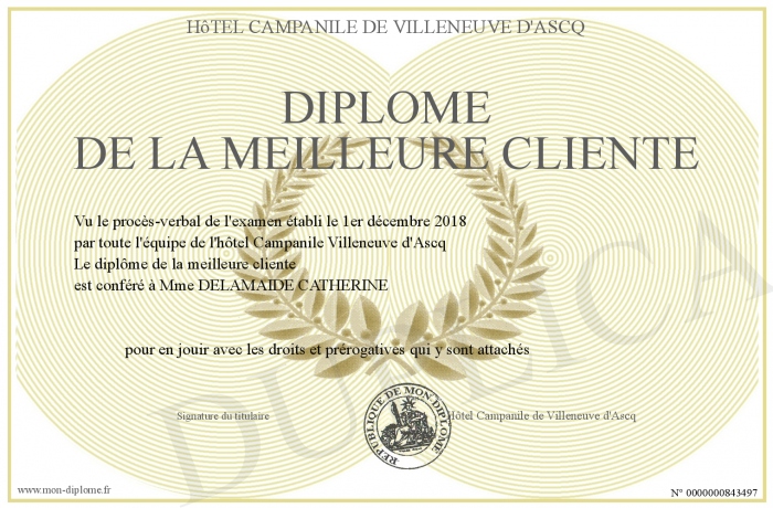 Envoyez par email votre Diplôme de la meilleure cliente personalisé