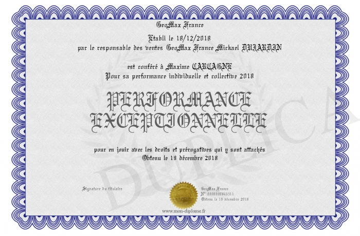 Envoyez par email votre PERFORMANCE EXCEPTIONNELLE personalisé