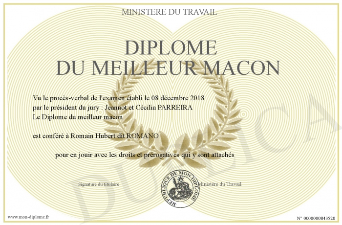 Envoyez par email votre Diplôme du meilleur macon personalisé