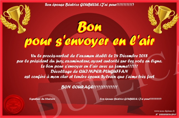 Envoyez par email votre Bon pour s'envoyer en l'air personalisé