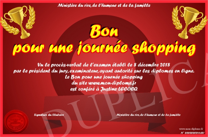 Envoyez par email votre Bon pour une journée shopping personalisé