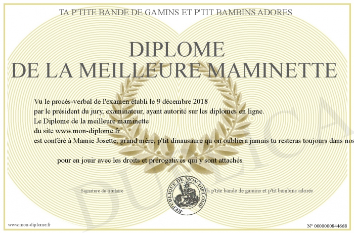 Envoyez par email votre Diplôme de la meilleure maminette personalisé