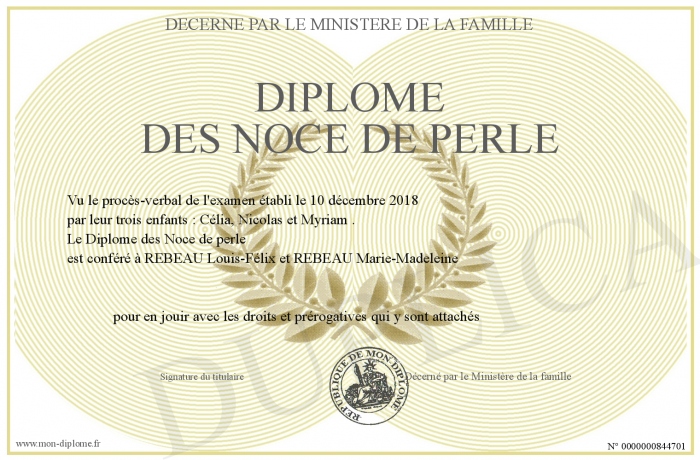 Envoyez par email votre Diplôme des Noce de perle personalisé