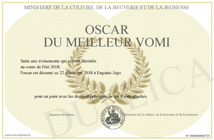 Envoyez par email votre Oscar du meilleur vomi personalisé