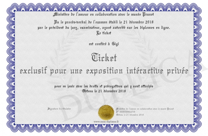 Envoyez par email votre Ticket exclusif pour une exposition intéractive privée personalisé