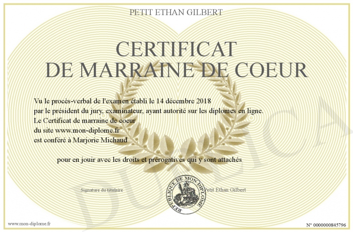 Envoyez par email votre Certificat de marraine de coeur personalisé