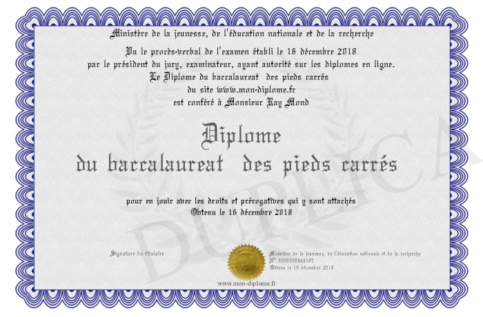 Envoyez par email votre Diplôme du baccalaureat des pieds carrés personalisé