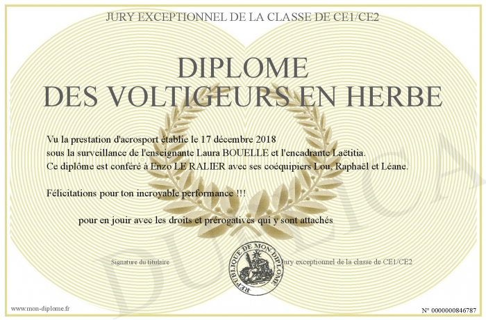 Envoyez par email votre Diplôme des voltigeurs en herbe personalisé