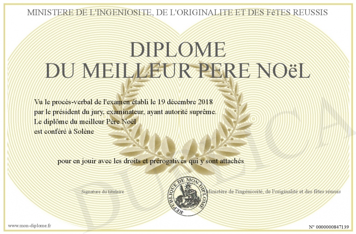 Envoyez par email votre Diplôme du meilleur Père Noël personalisé