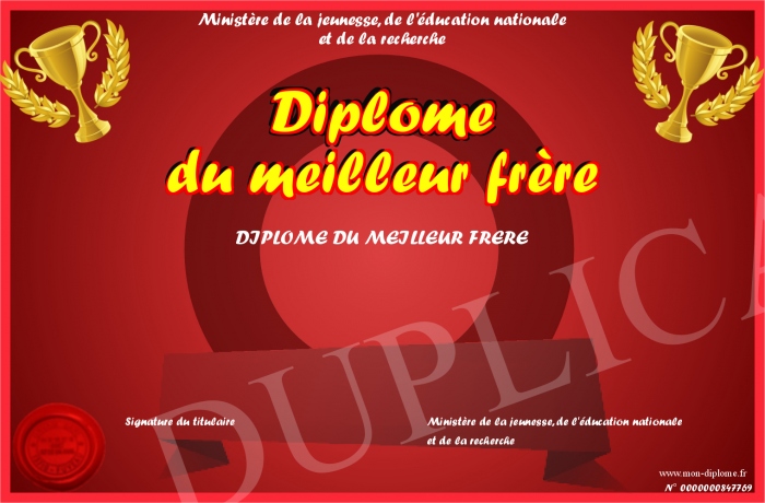 Envoyez par email votre Diplôme du meilleur frère personalisé