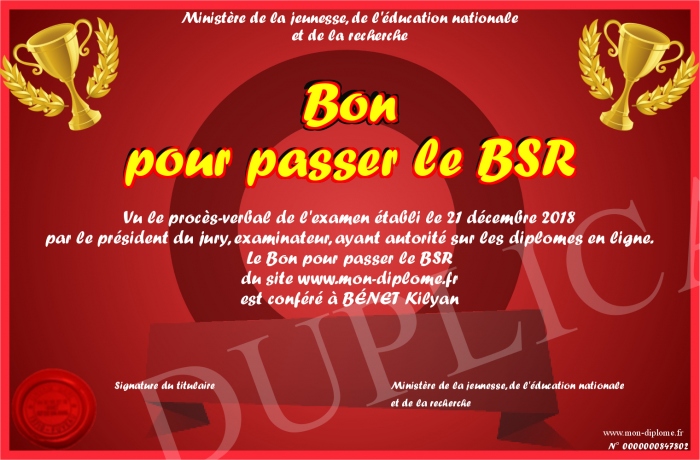 Envoyez par email votre Bon pour passer le BSR personalisé