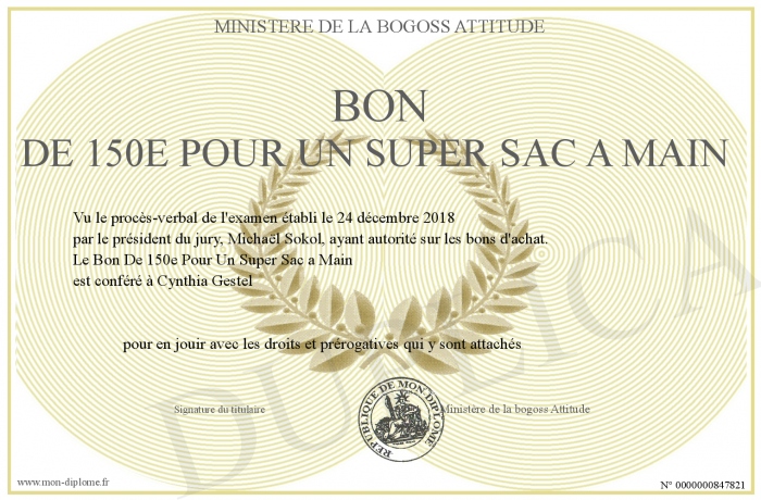 Envoyez par email votre Bon De 150e Pour Un Super Sac a Main personalisé